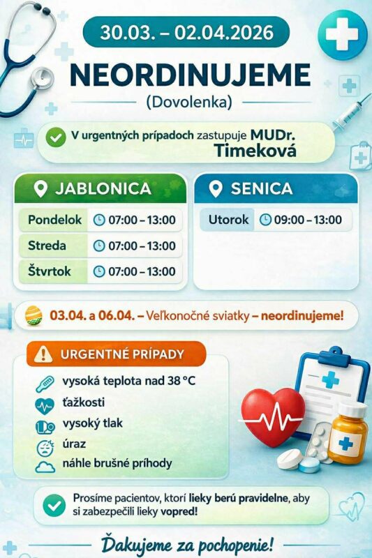 Prečítajte si najnovšie oznamy z našej ambulancie všeobecného lekára pre dospelých Galaklinik s.r.o.